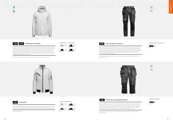 Lättskött polyester / bomull som håller färg och form. Stretchpaneler på bakstycket, för ökad rörlighet. Rymliga framfickor. Hölsterfickor med förstärkning och extra fack och extra ficka med blixtlås. Stolpfickor bak. Benficka med extra fack och ficklock med kardborrestängning. Tumstocksficka med knivhållare. Ficka för mattläggarknivar på låret. Förstärkning på knäskyddsfickor och med två höjdnivåer för knäskydd. Byxbenet kan förlängas med 5 cm genom ett utvik i benslutet. Certifierad enligt EN 14404:2004 + A1:2010 Typ 2 Nivå 1 tillsammans med Jobmans knäskydd 9943, 9944 och 9946.