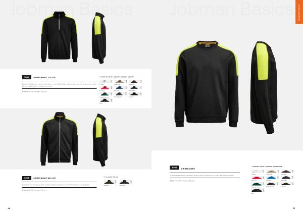 Sweatshirt i doubleface-material. Hög krage och kort blixtlås. Mudd i nederkant och ärmslut. Kontrastpanel i sidan( på den svart / gula sitter kontrasten på axlarna). |