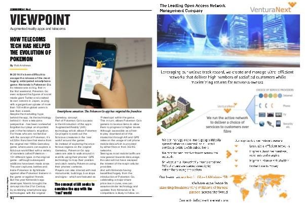 ‘ Pokestops’ within the game. This in turn, allows Pokemon Go’ s gamers to receive items to allow them to progress to higher levels. Although accessible as a freeto-play downland all of this interaction through AR and GPS relies on the usage of cell phone mobile data which is provided by either fibre or from 3G / 4G networks. Seeing as most mobile tariffs are now geared towards data usage, this also will not have escaped the interest of the major cellular providers. And with Nintendo having benefitted hugely from the introduction of Pokemon Go, celebrating a major share price rise in June, one can assume similar technology and updates from Nintendo or its competitors is likely to follow on.