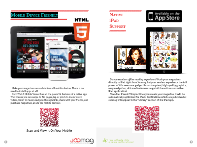 Do you want an offline reading experience? Push your magazines directly to iPad right from Joomag. Let your readers experience the full power of this awesome gadget. Razor sharp text, high quality graphics, easy navigation, rich media elements – get all these from our native iPad application!