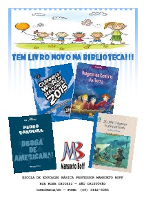 TEM LIVRO NOVO NA BIBLIOTECA!!! ESCOLA DE EDUCAÇÃO BÁSICA PROFESSOR MANSUETO BOFF RUA ROSA CHIOSSI — SÃO CRISTÓVÃO CONCÓRDIA/SC — FONE: (49) 3442-5085