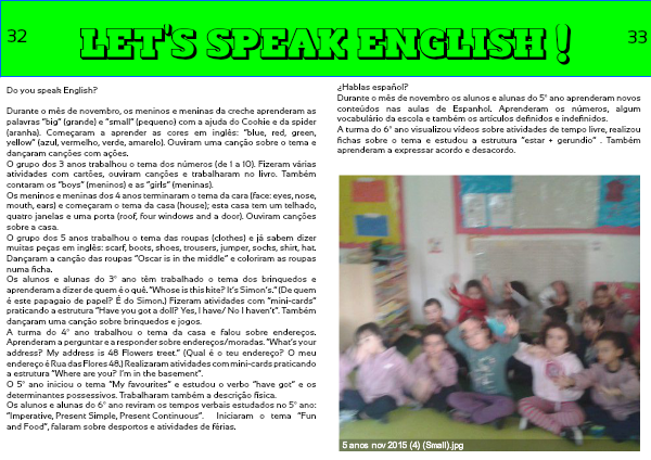Durante o mês de novembro os alunos e alunas do 5º ano aprenderam novos conteúdos nas aulas de Espanhol. Aprenderam os números, algum vocabulário da escola e também os artículos definidos e indefinidos.