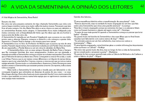 “No início não gostei muito da obra, mas ao longo do livro a vida da Sementinha vai-se complicando e aí passei a gostar” – Madalena
