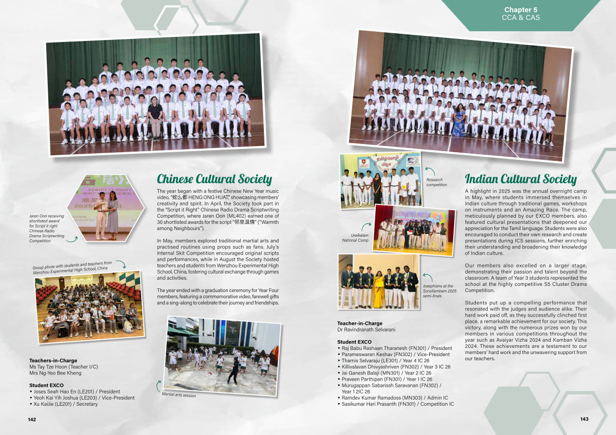 A highlight in 2025 was the annual overnight camp in May, where students immersed themselves in Indian culture through traditional games, workshops on instruments and an Amazing Race. The camp, meticulously planned by our EXCO members, also featured cultural presentations that deepened our appreciation for the Tamil language. Students were also encouraged to conduct their own research and create presentations during ICS sessions, further enriching their understanding and broadening their knowledge of Indian culture.