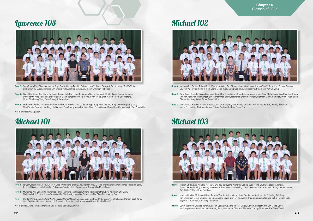 Izzul Hakim Bin Mohamed Razif, Zander Tan Jin Kai, Jamie Michael Ooi, Lucas Seah Kai Jie, Clive Ng Rui Kang, Tan Chun Kiat Elijah, Choong Tze En Zachary, Bryan Goh En Zo, Adam Ilyas Jennings Mator, Yeo Yi En, Reuben Soh, Zayden Tan Jin Hao, Lim Xing Yu Damon