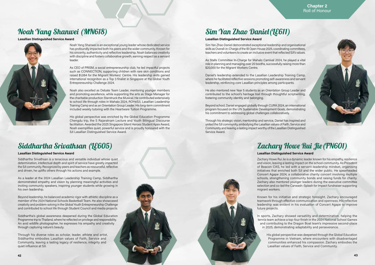 His global perspective was deepened through the Global Education Programme in Vietnam, where encounters with disadvantaged communities enhanced his compassion. Zachary embodies the Lasallian values of Faith, Service and Community.