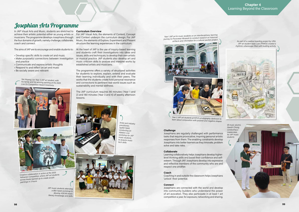 Collaborate Learning collaboratively helps Josephians develop higherlevel thinking skills and boost their confidence and selfesteem. Through JAP, Josephians develop into expressive and reflective members of the community who are and respect one another.