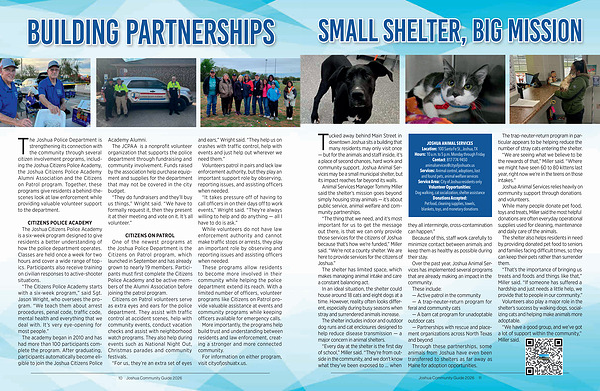 Tucked away behind Main Street in downtown Joshua sits a building that many residents may only visit once— but for the animals and staff inside, it’ s a place of second chances, hard work and community support. Joshua Animal Services may be a small municipal shelter, but its impact reaches far beyond its walls.