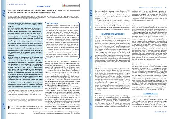 Key words: metabolic syndrome; osteoarthritis; abdominal