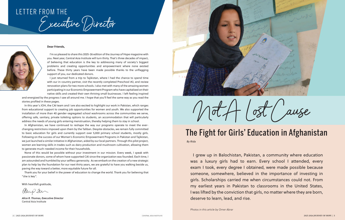 I grew up in Balochistan, Pakistan, a community where education was a luxury girls had to earn. Every school I attended, every exam I took, every degree I obtained, were made possible because someone, somewhere, believed in the importance of investing in girls. Scholarships carried me when circumstances could not. From my earliest years in Pakistan to classrooms in the United States, I was lifted by the conviction that girls, no matter where they are born, deserve to learn, lead, and rise.