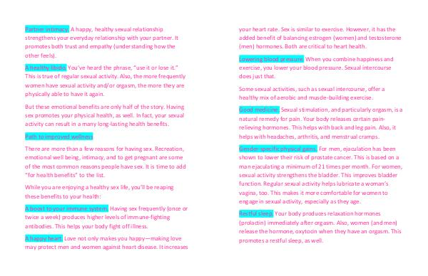Good medicine. Sexual stimulation, and particularly orgasm, is a