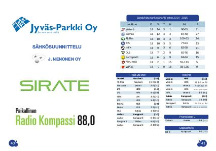 Bandyliiga runkosarja/Tilastot 2014 - 2015
