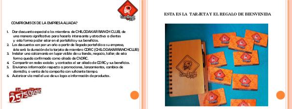 1. Dar descuento especial a los miembros de CHILODAKAR RANCH CLUB, de una manera significativa para hacerla interesante y atractiva a clientes y esta forma poder estar en el portafolio y sus beneficios.