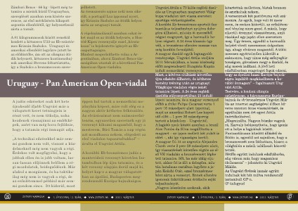 Zámbori Bence - 66 kg - lépett még tatamira a mieink közül Uruguayban, szereplését azonban nem kísérte szerencse, az els? mérk?zésén kikapott argentin ellenfelét?l, így helyezetlenül zárta a tornát. . A 81 kilogrammosok között remekül kezdett a kétszeres U23-as Eb-ezüstérmes Krizsán Szabolcs. Uruguayi és amerikai ellenfelét legy?zve jutott be az el?dönt?be, ám ott az olimpiai ötödik helyezett, kétszeres kontinensbajnok amerikai Stevens feltartóztatta, így a Szabolcs a bronzmeccsen szere-