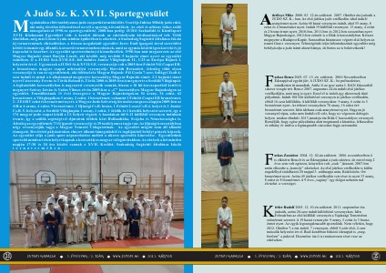 egalakulása el?tt tanfolyamos judo csoportként m?ködött. Vezet?je Juhász Mihály judo edz?, aki máig töretlen lelkesedéssel neveli a sportág növendékeit. Az edz? és néhány lelkes szül? támogatásával 1998-ra sportegyesületté, 2008-ban pedig: JUDO Szabadid? és Küzd?sport XVII. Közhasznú Egyesületé vált. A kezdeti id?szak az edzéshelyszín kiválasztásával telt. Több iskolában, még mai Gózon Gyula színház épületében is edzettek. A Szabadság Sugárúti Általános Iskola új tornatermének elkészültekor, a frissen megalakult egyesület Jurec Emil igazgató úrral szerz?dést kötött és immár egy állandó, korszer? tornateremben edzenek, amit az egymás közötti igen korrekt és jó kapcsolat is összetart. Az egyesület sporteredményei kiemelked?ek. 1998-ban már megszerezte az els? Magyar Bajnoki címet Burján László, aki kés?bb még további 5 bajnoki címet nyert az egyesület színeiben. ? a JUDO Sz.k.XVII.S.E.-b?l indulva Junior Világbajnok II., U23-as Európa Bajnok I. helyezést ért el. Ugyancsak a JUDO Sz.k.XVII.S.E. versenyz?je volt a 2005-ben Feln?tt N?i Csapat EBn bronzérmes magyar csapat nehézsúlyú versenyz?je Horváth Bernadett. Jelenleg több olyan versenyz?je is van az egyesületnek, aki többszörös Magyar Bajnok: Pál Gyula 7-szer, Szilágyi Zsolt 6szor indult és mind a 6 alkalommal megnyerte korosztálya Magyar Bajnoki címét. 2-2 bajnoki címet nyert Csizovszky Ferenc és Török Roland is. Török 2008 és 2009-ben is megnyerte a Serdül? Világkupát. A leg?atalabb korosztályban is nagyszer? versenyz?ik vannak, hiszen a 10 ?ú korcsoportból kett?t is megnyert Szávay István és Vadas Vilmos révén 2009-ben a „C” korosztályos Magyar Bajnokságon az egyesület. Fennállásának 11 évét összegezve a Magyar Bajnokságokon 54 arany, 34 ezüst, 62 bronzérmet, a Világkupákon 3 arany, 2 ezüst, 1 bronzérmet, valamint 1 Feln?tt Csapat EB bronzérmet, 2 - 2 EORV ezüst és bronzérmet nyert. A Magyar Judo Szövetség hivatalos rangsora alapján 2009-ben az OB-n 6 arany, 4 ezüst, 9 bronzérmet, 1 Ifjúsági Cs.B. bronz, 1 Feln?tt I.oszt.Cs.B 4. helyet és 1 Junior Cs.B. 5. helyezést, a Serdül? Világkupán 1 arany, 1 ezüst, 1 ötödik és 1 hetedik helyezést szerzett, így a 174 magyar judo csapat közül a 13. helyen végzett. A hazaiakon túl 8-12 külföldi versenyen indulnak évente, így a szül?k segítségével eljutottak többek közt Hollandiába, Svájcba és Németországba is. Jelenleg az egyesületnek 73 f? igazolt versenyz?je és 29 tanfolyamos tagja van. Az ifjúsági korosztályban négy versenyz?jük tagja a Magyar Nemzeti Válogatottnak. Az egyesület mögött nem áll állandó támogató. Bevételeit pályázatokon elnyert állami támogatásból és tagdíjakból befolyt pénzek képezik. Az egyesület célja a judo sport népszer?sítése mellett a sikeres sportolók kinevelése. Egyesületünk sportolói minden évben helyet kapnak a korosztályos magyar válogatottakban. Az edzések a hét minden napján 17:30 és 20 óra között vannak a XVII. Kerület, Szabadság Sugárúti Általános Iskola t o r n a t e r m é b e n . .