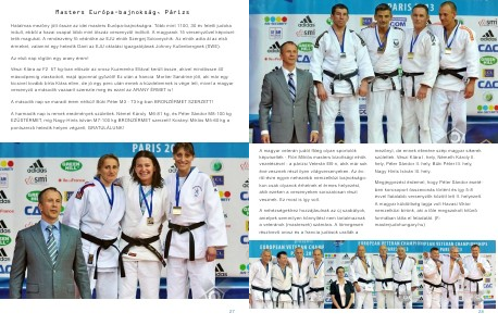 Hatalmas mez?ny jött össze az idei masters Európa-bajnokságra. Több mint 1100, 30 év feletti judoka indult, ebb?l a hazai csapat több mint ötszáz versenyz?t indított. A magyarok 15 versenyz?vel képviseltetik magukat. A rendezvény f? védnöke az EJU elnök Szergej Soloveychik. Az elnök adta át az els? érmeket, valamint egy hetedik Dant az EJU oktatási igazgatójának Johnny Kullenbergnek (SWE). Az els? nap rögtön egy arany érem! Vészi Klára az F2 57 kg-ban el?ször az orosz Kuzmenko Ellával került össze, akivel mindössze 40 másodpercig viaskodott, majd ipponnal gy?zött! Ez után a francia Mortier Sandrine jött, aki már egy kicsivel tovább bírta Klára ellen, de jó egy perc után ennek a küzdelemnek is vége lett, mivel a magyar versenyz? a második vazaarit szerezte meg és ezzel az ARANY ÉRMET is! A második nap se maradt érem nélkül! Büki Péter M3 - 73 kg-ban BRONZÉRMET SZERZETT! A harmadik nap is remek eredmények születtek. Német Károly M6-81 kg, és Péter Sándor M8-100 kg EZÜSTÉRMET, míg Nagy-Hints István M7-100 kg BRONZÉRMET szerzett! Korányi Miklós M5-60 kg a pontszerz? hetedik helyen végzett. GRATULÁLUNK!