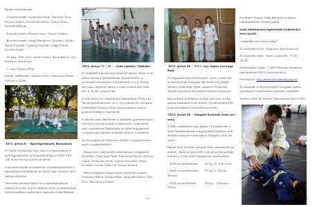 Egyéni eredmények: - Aranyérmesek: Keresztes Antal, Demeter Áron, Kovács Dániel, Szalonnás Bálint, Kanyó Ervin, Horváth Mátyás - Ezüstérmesek: Morvai Laura, Kanyó Heléna - Bronzérmesek: Varga Benjámin, Orlovácz Zoltán, Sánta Krisztián, Katona Krisztián, Nagy Dávid, Csorba István - IV. hely: Tóth Alvin, Kollár Kristóf, Barta Bence, KisGombos Alexandra - V. hely: Ézsiás Péter Edz?k, felkészít?k: Tanács Attila, Piukovics Tamás, Páncsics Zoltán 2013. június 17 – 21. – Judo napközi, Tata