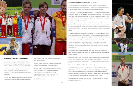 GERCSÁK SZABINA EZÜSTÉRMES AZ EYOF-on Az elutazáskor egy aranyéremben bizton reménykedett a magyar küldöttség. Nem alaptalanul, hiszen a cselgáncsozó Gercsák Szabina a közelmúltban nyerte meg korosztálya Európa-bajnokságát. A hollandiai EYOF-on is úgy menetelt el?re a 63 kg-os súlycsoport mérk?zésein, ahogy az várható volt t?le. Az els? fordulóban még er?nyer? volt, majd meg sem állt a dönt?ig. Az olasz Prosdocimot, a szerb Tintort, a brit Piovesanat mind ipponnal gy?zte le – tájékoztatott a Magyar Olimpiai Bizottság sajtóirodája. A másik ágon a hazaiak kedvence, Lisa Mullenberg jutott be a ?náléba. Tudtuk, hogy nem lesz könny? meccs a hazai versenyz? ellen küzdeni Hollandiában. A két versenyz? épp a már említett kontinensviadalon csapott össze a dönt?ben, amely akkor magyar gy?zelemmel ért véget. A találkozó egyetlen intéssel fejez?dött be, ezt is Gercsák kapta, így a holland lett a súlycsoport gy?ztese. A magyar lány csalódottan hagyta el a tatamit, s az sem vigasztalta, hogy a mérk?zést látott szakemberek szerint bárhol más helyen ezt a találkozót ? nyerte volna meg. „A mérk?zés el?tt az edz?m mondta, hogy vigyázzak, mert hazai pálya, és inteni fognak... Egy holland lánnyal kerültem össze a dönt?ben, ?t az Eb-n ipponnal