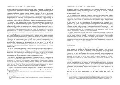 la resistencia social en la región es paradigmática a nivel nacional, al impedir de momento, la implementación de cualquier megaproyecto aurífero en la región. Por cierto, la Anglogold está asociada a aparatos militares y paramilitares tanto en Colombia, como en países centro africanos( Molano, 2006).