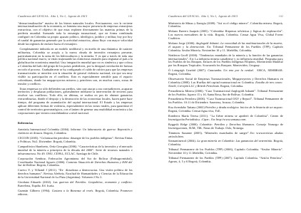 “ desnacionalización” masiva de los bienes naturales locales. Precisamente, con la reciente internacionalización de la economía, se fomenta una mayor presencia de empresas extranjeras extractivas, con el objetivo de que estas exploten directamente las materias primas de la periferia mundial. Sumando toda la estrategia trasnacional, que en forma combinada configuró en Colombia su propio aparato político, ideológico, jurídico y militar, hoy por hoy el caudal de ganancias generado por la actividad extractiva, ahora fluye con mayor velocidad desde las regiones de enclave hacia el extranjero.