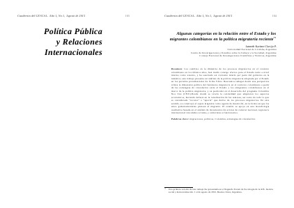 Algunas categorías en la relación entre el Estado y los migrantes colombianos en la política migratoria reciente 75