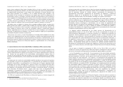 Este proceso no es nuevo, se viene desarrollando en Colombia desde mediados de los años sesenta con la implementación de una serie de políticas y modelos que implican prácticas de privatización, descentralización con desconcentración de funciones y desfinanciación, que se intensifican a partir de finales de la década de los ochenta. Es preciso entonces, mirar de cerca este proceso en la reforma de la Educación Superior y específicamente de la Universidad Pública colombiana.