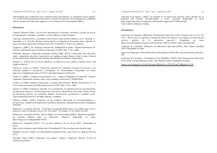 Gobierno de Colombia-Ministerio de Educación Nacional.( 2011), Proyecto de Ley no. 112 2011. " Por la cual se organiza el sistema de educación superior y se regula la prestación del servicio público de la educación superior”. Disponible en línea: http:// www. mineducacion. gov. co / 1621 / articles-284552 _ archivo _ pdf _ articulado. pdf