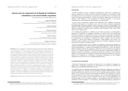 Durante los últimos seis años la población colombiana que migra hacia la Argentina por motivos académicos ha crecido de manera exponencial. Respecto a este fenómeno surgen interrogantes acerca de las razones de su ocurrencia y las motivaciones de las personas que viajan. Instituciones gubernamentales y ONGs han producido algunos datos al respecto, sin embargo, están limitados a una descripción de universos parciales y sin mayores caracterizaciones sobre la población que ha llegado a las universidades.