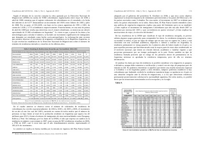 adoptado por el gobierno del presidente N. Kirchner en 2006, y que tuvo como objetivo regularizar la situación migratoria de ciudadanos pertenecientes a los países del Mercosur y de los países asociados como Colombia. Por esta razón, el incremento en 2007 es evidente para todos los países relacionados en la tabla. Ahora bien, El Plan Patria Grande entendido como una política de regulación migratoria explica una parte del fenómeno pero no su totalidad. ¿ Cómo explicar el incremento de inmigrantes Colombianos que año tras año desde 2007 se mantiene por encima del 130 % y que su tendencia no parece reversar? ¿ Cómo explicar las motivaciones de viaje y la elección del destino?