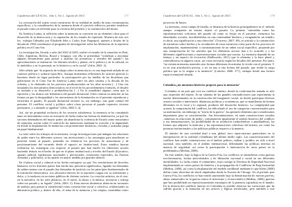 Jelin señala que“ la urgencia de trabajar sobre la memoria no es una inquietud aislada de un contexto político y cultural específico. Aunque intentemos reflexiones de carácter general, lo hacemos desde un lugar particular: la preocupación por las huellas de las dictaduras que gobernaron en el Cono Sur de América Latina entre los años sesenta y la década de los ochenta, y lo elaborado en los procesos posdictatoriales en los años noventa […] Una vez instalados los mecanismos democráticos en el nivel de los procedimientos formales, el desafío se traslada a su desarrollo y profundización […] En la actualidad algunos creen que la represión y los abusos son fenómenos del pasado dictatorial. Otros centran su atención en las formas en que la desigualdad y los mecanismos de la dominación en el presente reproducen y recuerdan el pasado. El pasado dictatorial reciente es, sin embargo, una parte central del presente. El conflicto social y político sobre cómo procesar el pasado represivo reciente permanece, y a menudo se agudiza”( Jelin, 2002:3, 4).