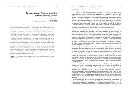 Cuadernos del GESCAL. Año 1, No 1, Agosto de 2013 190 1. Reflexiones sobre la memoria