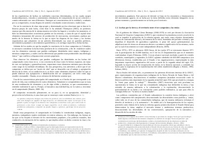 Además de los modos en que ha surgido la conciencia de la clase campesina en Colombia, es necesario considerar la lucha étnica producto de la colonización, a fin de establecer cuáles son los elementos comunes que pueden configurar identidades entre negros, indígenas y mestizos campesinos, y cuáles son las diferencias que pueden estar produciendo una ideología étnica 130 que conlleva a disputas entre sectores populares.