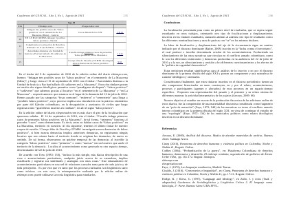 La focalización presentada posa como un primer nivel de resultados, que se espera seguir estudiando en otros trabajos, orientando otro tipo de focalizaciones y desplazamientos inscritos en los titulares estudiados, sumando además al análisis otro tipo de resultados como las diferentes nominalizaciones y usos de pasivas con“ se” en los mismos titulares.