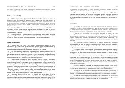 b)“ Sin fecha de regreso”: Debido a su permanencia en La Habana, los medios especulan sobre la duración de la estadía y el tratamiento. Parten del hecho de que si no regresa pronto al país es que la enfermedad es más grave de lo que se dice. Al presentar las informaciones sobre la base de un no acontecimiento periodístico, es decir, el retorno, los medios desvían la atención sobre los hechos y construyen sus propias interpretaciones.