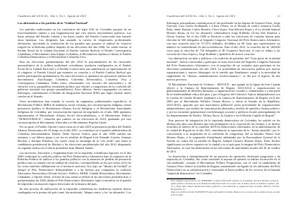 Cuadernos del GESCAL. Año 1, No 1, Agosto de 2013 61 Las alternativas a los partidos de la“ Unidad Nacional”