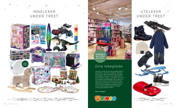 Hos Ringo finner du kule og populære leker til gode priser . I det store utvalget er det blant annet Lego , radiostyrte leker , spill og dukker . Leveregelen til Ringo er at det aller beste et barn opplever er leken , og at alle barn har rett til å oppleve ekte lekeglede . Det er gjennom leken barna lærer hverandre å kjenne , føler mestring og utvikler seg . I butikken møter du erfarne og entusiastiske medarbeidere som mer enn gjerne hjelper deg med å velge riktige og gode leker til barna . |