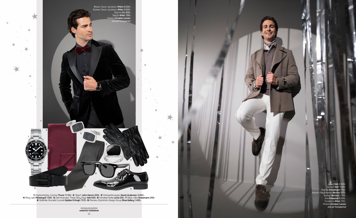 Ascott / Sløyfetørkle Bertoni 889,- Bukser Bertoni 1.799,- Sko Follestad 4.499,- Armbånd 4Men 700,-