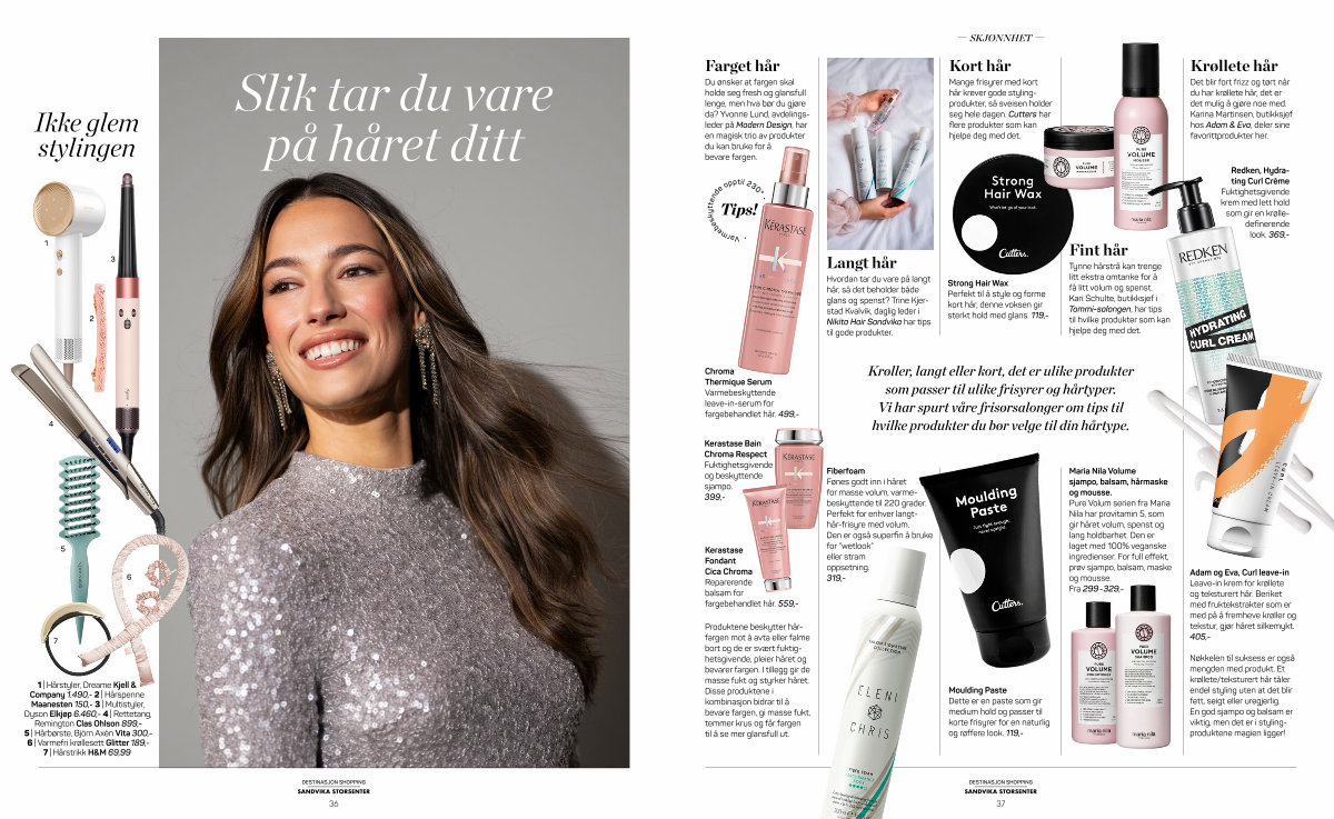 1 | Hårstyler, Dreame Kjell & Company 1.490,- 2 | Hårspenne Maanesten 150,- 3 | Multistyler, Dyson Elkjøp 6.460,- 4 | Rettetang, Remington Clas Ohlson 899,- 5 | Hårbørste, Björn Axén Vita 300,- 6 | Varmefri krøllesett Glitter 189,- 7 | Hårstrikk H & M 69,99