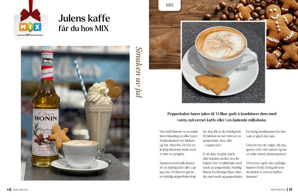 Sammen med melk danner de en nydelig latte eller cappuccino . Vi tilsetter gjerne en nydelig pepperkakesirup for deg slik at du virkelig kan få følelsen av jul i form av en pepperkake-latte eller - cappuccino !