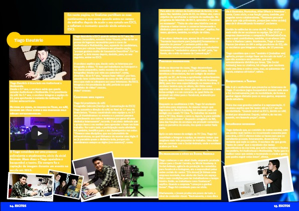 Para além do núcleo de Audiovisual da Escola, o ex-aluno fez, também, parte do E2, no último ano, com o objetivo de aprofundar a vertente de realização. No programa de televisão da ESCS, aprendeu a “resolver no momento”. “Tinha de criar uma história com as câmaras e tentar tornar a conversa interessante e dinâmica para quem está a ver em casa”, explica. Por vezes, ajudava, também, na edição de vídeo.