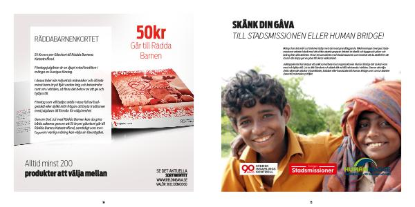 Julklappskortet har skapat ett unikt samarbete med organisationen Human Bridge där du kan vara med och hjälpa till . Lös in ditt Gåvokort och skänk ditt val till behövande i världen . Genom att välja detta alternativ skickar vi barnkläder , bäddset eller handdukar till Human Bridge som i sin tur skänker dessa till människor på flykt .