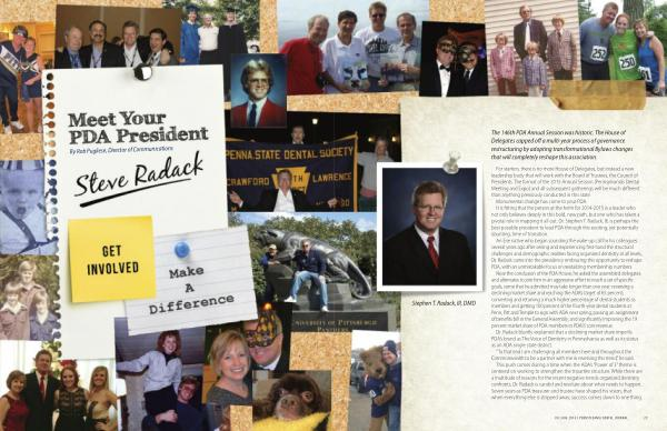 For starters , there is no more House of Delegates , but instead a new leadership body that will work with the Board of Trustees , the Council of Presidents . The format of the 2015 Annual Session ( Pennsylvania ’ s Dental Meeting and Expo ) and all subsequent gatherings will be much different than anything previously conducted in this state . Monumental change has come to your PDA . It is fitting that the person at the helm for 2014-2015 is a leader who not only believes deeply in this bold , new path , but one who has taken a pivotal role in mapping it all out . Dr . Stephen T . Radack , III , is perhaps the best possible president to lead PDA through this exciting , yet potentially daunting , time of transition .