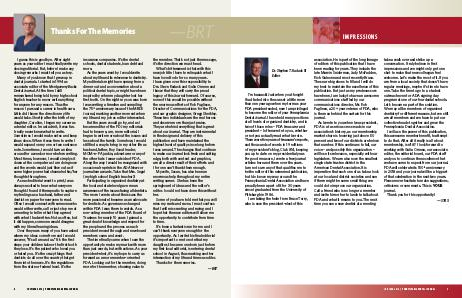 What’ s bittersweet is that with this new job title I have to relinquish what I have loved to do for so many years. I have given over this responsibility to Drs. Steve Radack and Gulia Omene and I know that they will carry the proud legacy of this Journal forward. Of course, none of this would be possible without the enormous efforts of Rob Pugliese, Director of Communications for the PDA, and our graphic designer, Gregg Sheibley. These two individuals are the real heroes and deserve more than just praise. They are behind everything that is great about our Journal. They are instrumental in the design and delivery of this publication and have maintained the highest level of quality since long before I was around. The changes that continue to make our Journal look fresh and cutting edge, both with content and graphics, are all a direct result of their efforts and I for one can’ t thank them enough.