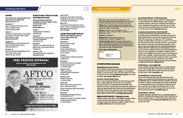 Classified Advertising Policy: The Pennsylvania Dental Association is unable to investigate the offers made in Classifieds and, therefore, does not assume any responsibility concerning them. The Association reserves the right to decline to accept or withdraw advertisements in the Classifieds. The Journal reserves the right to edit classified ad copy.