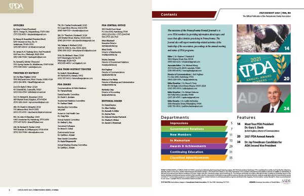 2 JULY / AUGUST 2021 | PENNSYLVANIA DENTAL JOURNAL