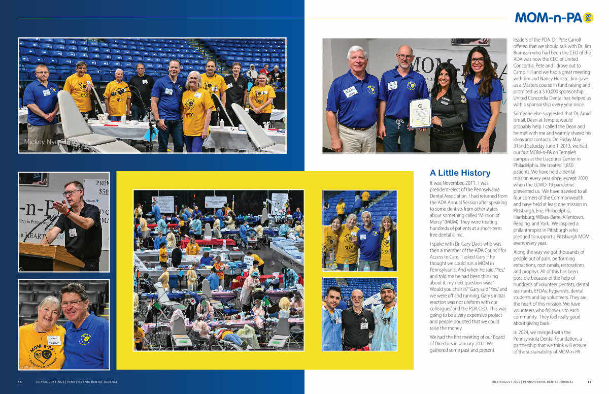 It was November, 2011. I was president-elect of the Pennsylvania Dental Association. I had returned from the ADA Annual Session after speaking to some dentists from other states about something called“ Mission of Mercy”( MOM). They were treating hundreds of patients at a short-term free dental clinic.