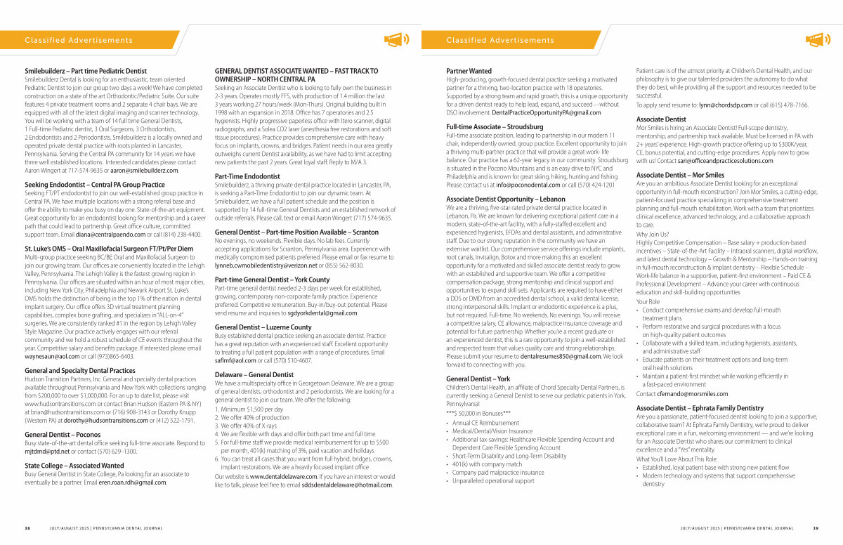 38 JULY / AUGUST 2025 | PENNSYLVANIA DENTAL JOURNAL
