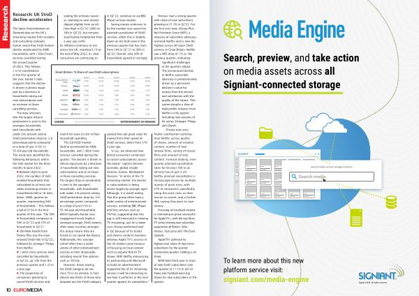 “ In Q2 , we observed how British consumers continued to cancel subscriptions across the board ,” reports Dominic Sunnebo , global insight director , Kantar , Worldpanel Division . “ In terms of the TV streaming market , the decline in subscriptions is being driven largely by younger ages . Although , it is worth noting that this group often have a wider variety of entertainment sources , including BBC iPlayer and free services such as TikTok , suggesting that this age is still interested in viewing TV streaming , just for a lower cost . Disney performed well in Q2 because of its broad and diverse content inventory whereas Apple TV ’ s success in the UK market came because of focusing on local content , such as popular British TV shows . With Netflix announcing its partnership with Microsoft to build an advertisementsupported tier of its streaming service , it will be interesting to see how it performs in the next quarter against its competitors .”