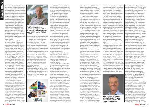 “ Intelligent CPE offers incumbent NSPs the chance to differentiate themselves from alternative network providers - or altnets - by offering managed services that are tailored to the needs of the different market segments they seek to address ,” notes Toutah . “ It creates an opportunity to offer value-added services on top of the broadband access to enhance the connected home experience . This includes managing the performance of WiFi in the home . Altnets can compete on network speed and throughput . CPE , however , lays the foundation for providing high-quality end-toend services that integrate access , in-home wireless and content management .” VOICE . How important is voice control as a driver for CPE renewal and what trends are you seeing in terms of using voice-control rather than traditional remotes ? “ This is not an either-or scenario ,” says McKee . “ Voice control has undoubtedly become important to consumers , yet it is complementary to the remote control . For most services , the remote control continues to be the primary means of interaction . Voice control has some blind spots and we ’ ve all had experiences where it ’ s clunky