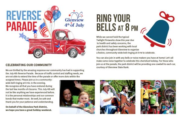 the July 4th Reverse Parade. Because of traffic control and staffing needs, we